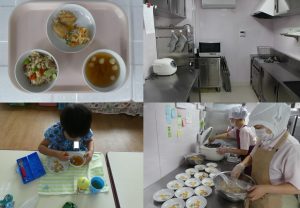 園内に調理室を設けて作っているので温かい給食が食べれます。